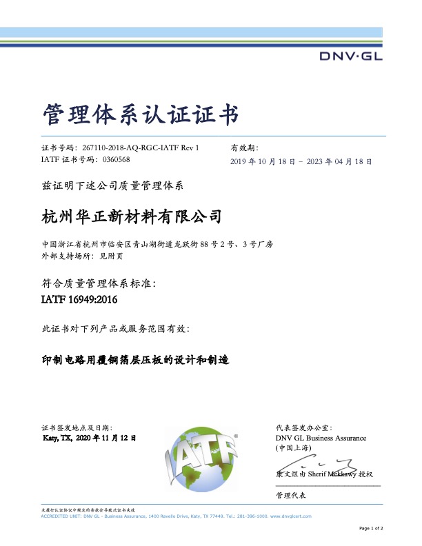 IATF16949【浙江华正】