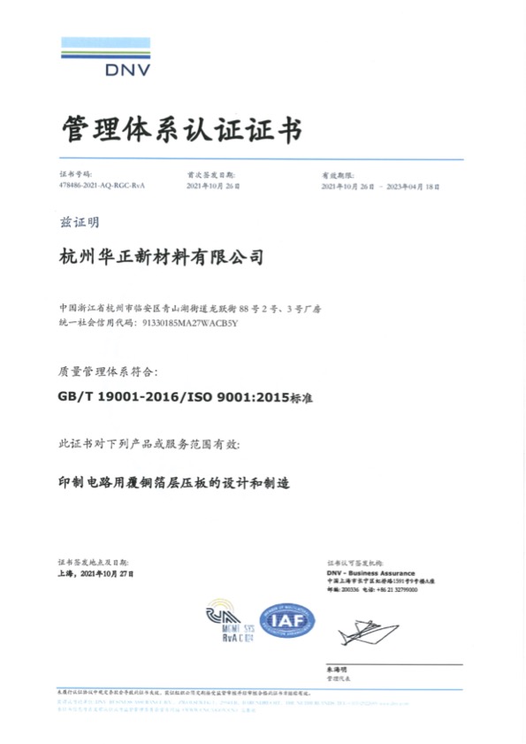 ISO9001【浙江华正】